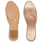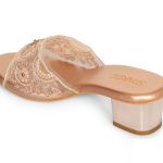 Crafted with a premium metallic finish footbed and a beautifully detailed embroidered mesh upper, these slip-on heels blend comfort with sophistication. The delicate floral embroidery with subtle embellishments enhances the overall luxury appeal.