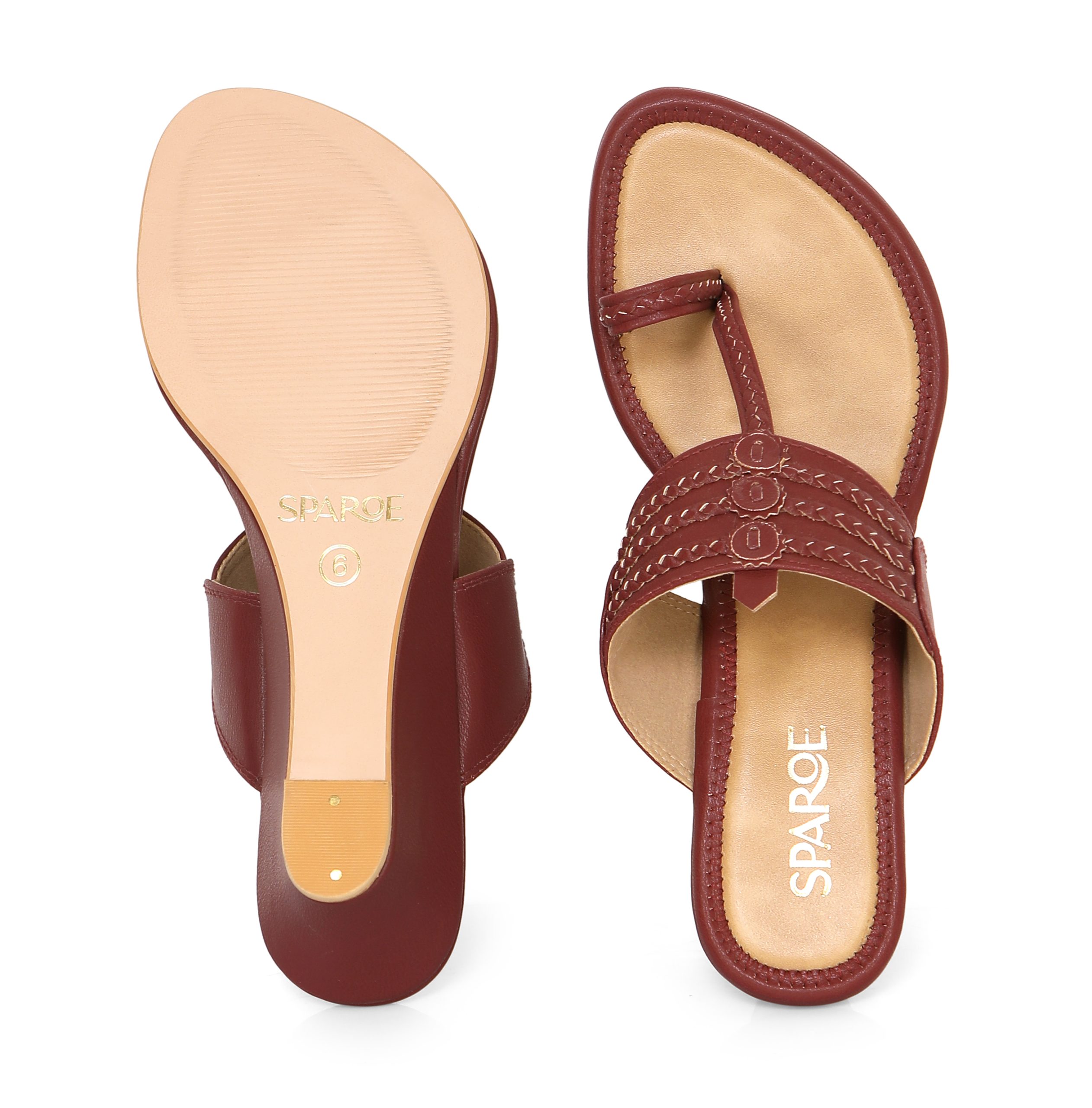 Women’s Copper / Rose Gold Embroidered Block Heel Sandals | Ethnic Toe-Ring Slip-On Heels | Festive & Wedding Wear Footwear