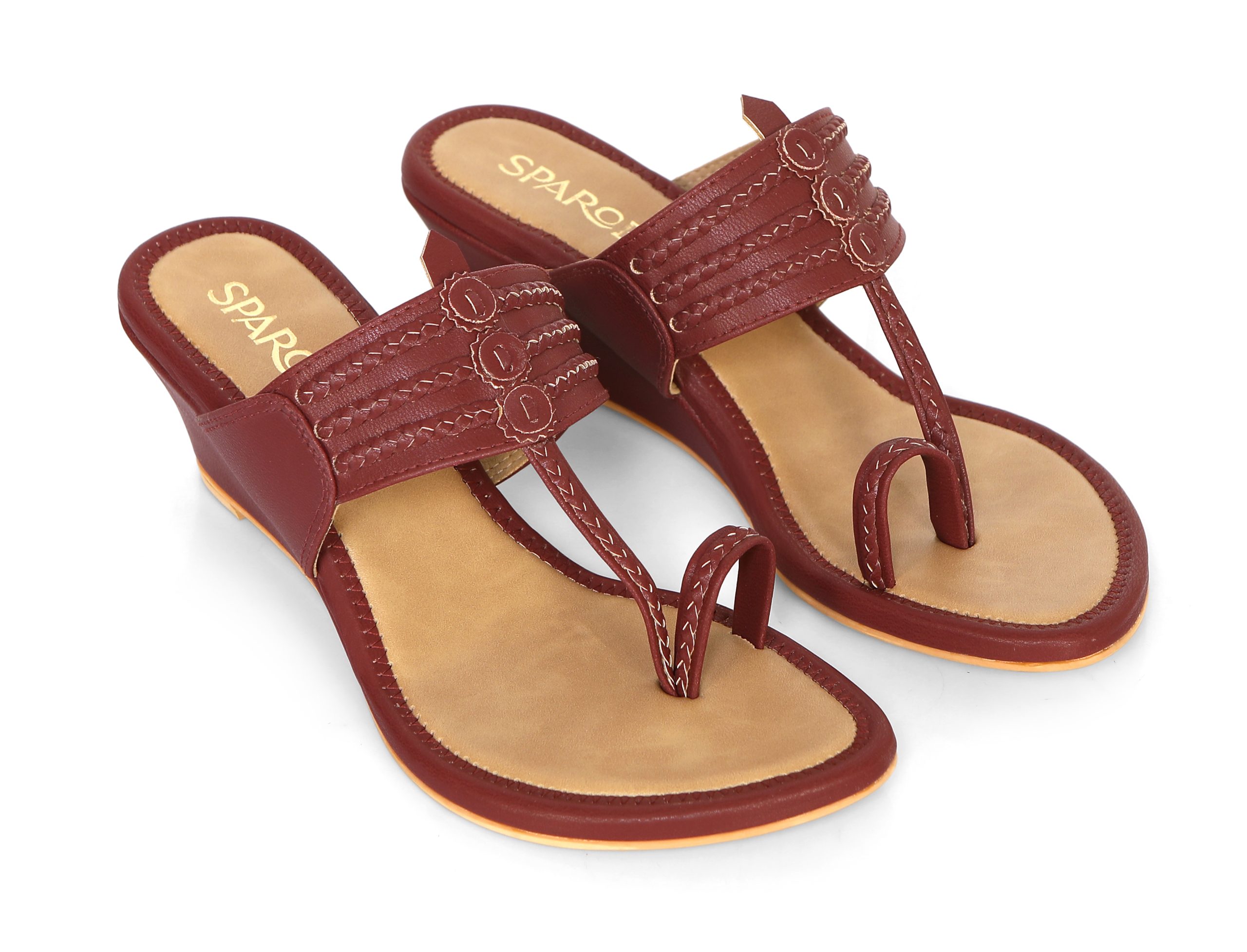 ₹1,599.00Stylish SPAROE gold embellished sandals with a cushioned footbed and elegant design. Perfect for weddings, festive occasions, and party wear, offering both comfort and premium style